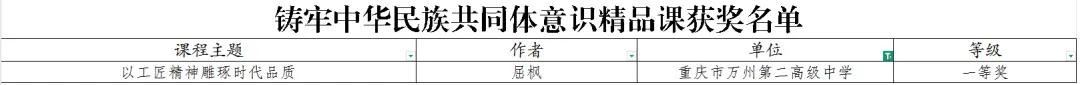 屈枫老师《以工匠精神雕琢时代品质》课例获评一等奖。