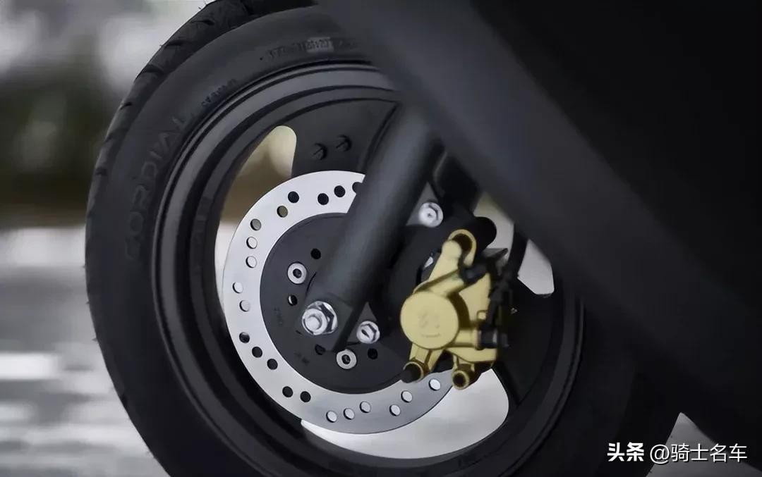 轮毂方面:采用压铸式锻造的铝合金轮毂、坚固,安全,轮毂型号为,前轮12寸,后轮10寸。轮毂匹配国内知名品牌原厂轮胎:程远真空胎,前轮型号为:90x90-12,后轮为110x90-10。轮胎静音耐磨。