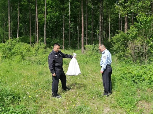 6月4日中午,天桥岭森林公安分局内河派出所民警正在巡逻时,辖区内河林场职工反映:在在内河林场场部,有一条黑黄相间的大蛇,正在办公楼前的广场上盘桓,怕其伤人不敢靠近。巡逻民警立即赶达现场,发现一条近两米左右长的大蛇正在广场上游走,不时抬起头左顾右盼。为确保不发生蛇伤人和人伤蛇情况发生,民警决定将其捕获后视情况放生野外。为防止大蛇突然发起攻击咬伤职工群众,民警一边疏散围观群众,一边找来木棍、口袋等物品,对大蛇进行抓捕。为避免抓捕过程中受到伤害,几经周折,大蛇终于被巡逻民警抓获。