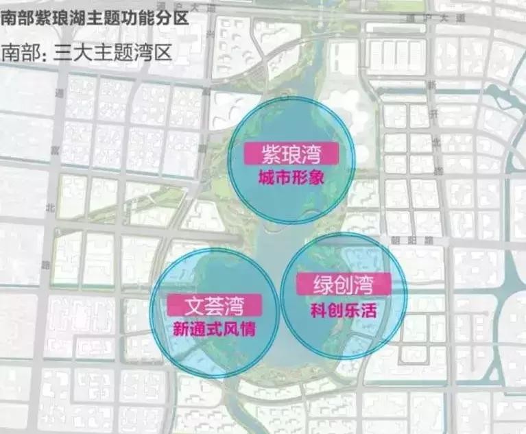 紫琅湖位于中央创新区南部,总面积30公顷。紫琅湖和隧道完工后,市民可以湖上泛舟、沿着湖泊骑行,还能驾车从湖底穿梭而过,感受别样的风景。