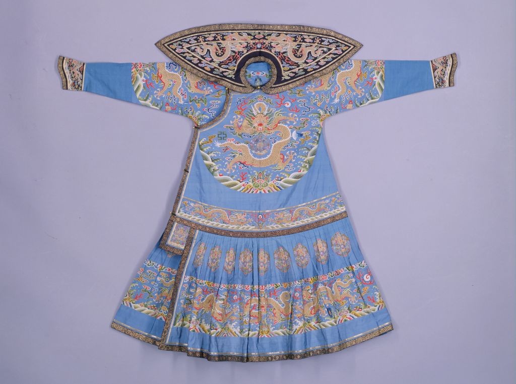 图1、清雍正 月白色云龙妆花纱袷朝袍
