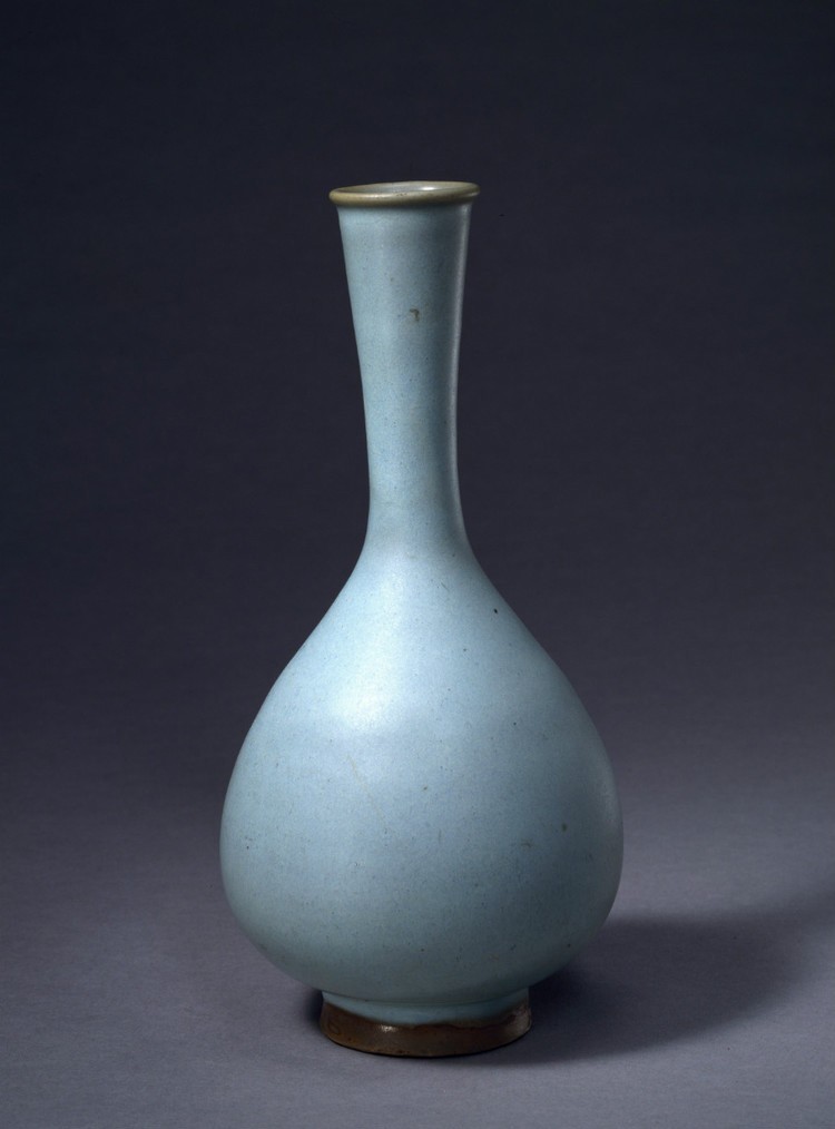 与月白相似的是“鱼白”,即“鱼肚白”,以近似鱼腹部之色故名,也是一种白里透青的颜色,比月白更淡。陈浏《陶雅》中说:“圴窑有紫、青两种,青者俗谓之‘月白’,实渊源于柴周之雨过天青。康雍两窑,青色益淡,再淡则为‘鱼肚白’矣。其较深者,厥称‘东青’。”许之衡《饮流斋说瓷》亦云:“月白、鱼肚白,乃青之最淡者。”