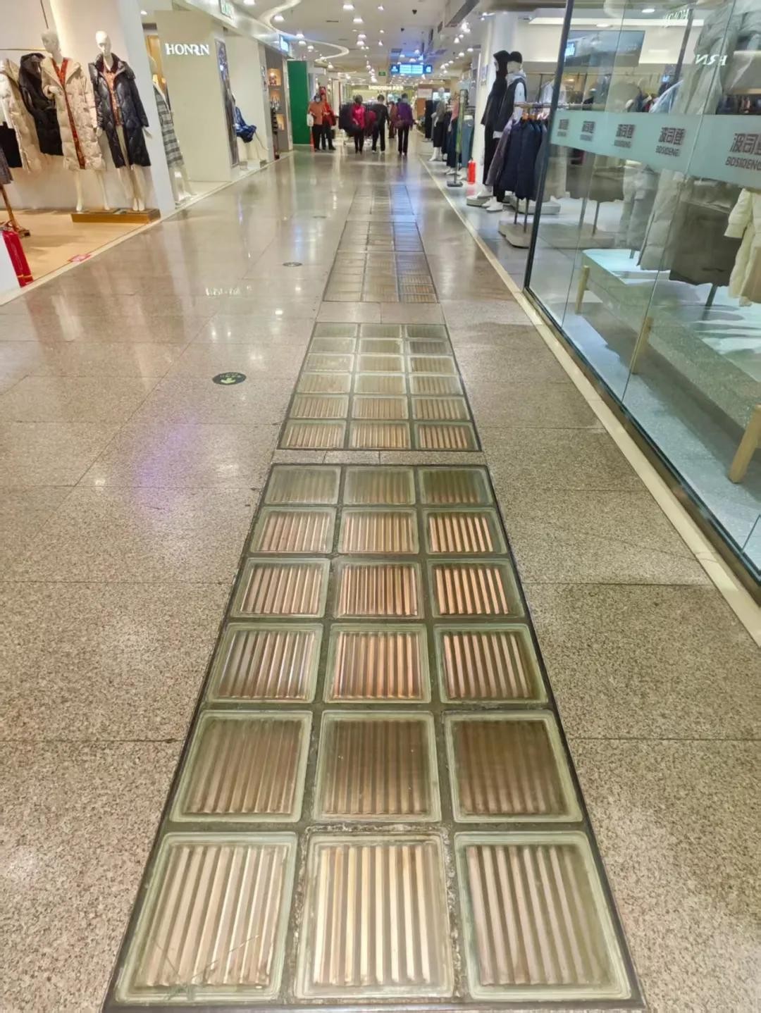 特别是商场东侧一楼那半透明的棚顶,可以说是设计别具匠心,它是由半透明的玻璃材质构成,横向3块方格,竖向6块方格,每组共18块。听不少本地的小伙伴说,在以前父母领他们来逛商场时,总是喜欢在这玻璃道上行走。