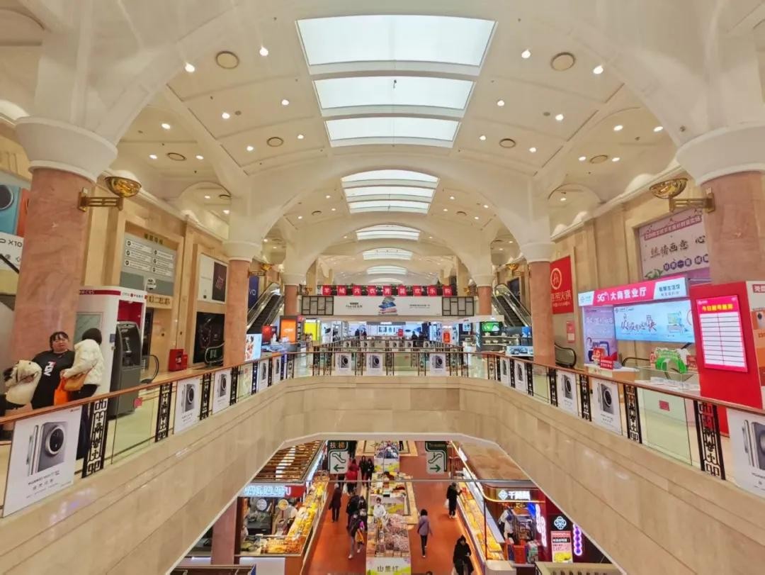 如今大商新玛特占地总面积近5万平方米,其中中央大堂占地3000多平方米。这里汇聚了众多商品品类,从服饰鞋帽、家用电器、海产品、副食、床品厨具、化妆名表、黄金珠宝、运动休闲、针织羊绒,一应俱全。