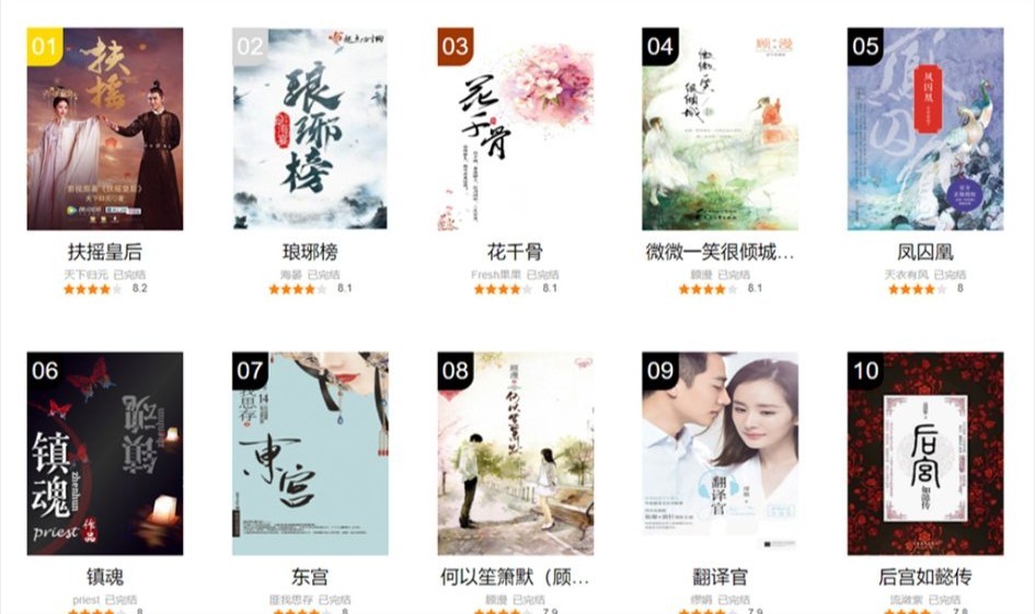 言情类十大作品《扶摇皇后》第一,《琅琊榜》屈居第二……