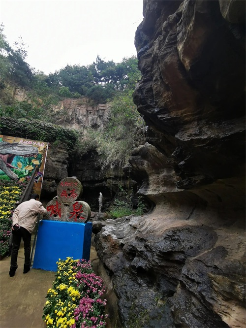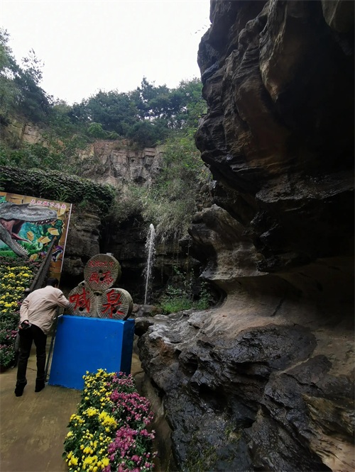 出口处有一个景点——喊泉,大声喊泉水就喷涌而出,喊声越大喷涌越高