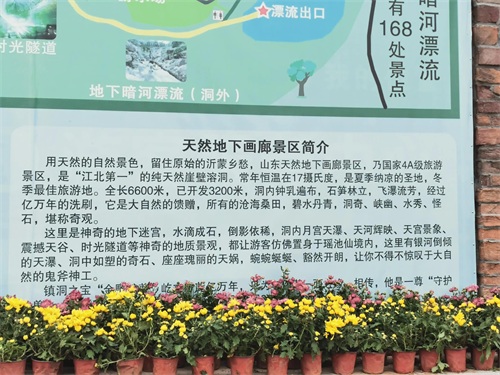 沂水天然地下画廊”旅游风景区位于沂蒙生态第一乡、“红嫂故里”--山东省临沂市沂水县院东头乡留虎峪。地下画廊长度6600米。