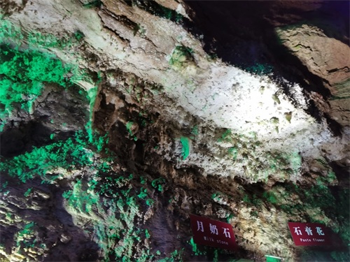 整个画廊气势磅礴,石乳、石笋、石柱、石幔、石帘、石花、石旗、石葡萄、鹅管、飞瀑等各类象形钟乳石,参差错落、千姿百态,向人们展示着一幅幅百万年来从未示人的神秘画卷。