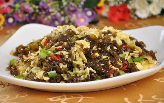 材料:鸡蛋,水发地皮菜(地软软)葱