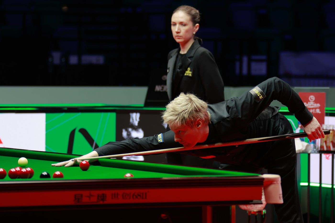 在上比赛日的1/8比赛中,中国军团4人出战,最终仅肖国栋取胜晋级。其中,00后小将吴宜泽对阵世界冠军宾汉姆,吴宜泽开局连续轰出两杆破百,在大比分2-0领先优势下被4连鞭,惨遭逆转出局;徐思对阵替补参赛球员侯赛因.瓦菲,虽然比赛中徐思打出了5杆50+,瓦菲仅贡献1杆50+,但是徐思防守偏弱,关键球处理不当,最终大比分3-4遗憾出局。肖国栋和雷佩凡德比战,两人战至决胜局,最终肖国栋拿下比赛晋级。