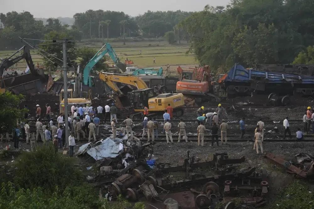 铁路工人们正在辛勤工作,清理车厢残骸,并修复断裂的轨道。消防和应急服务人员也参与救援工作。印度总理纳伦德拉-莫迪亲自前往失事地点,并与救援人员和伤者进行交谈。他表示对事故中遇难者的痛苦表示同情,并承诺政府将竭尽全力帮助受灾者,并严惩责任人。