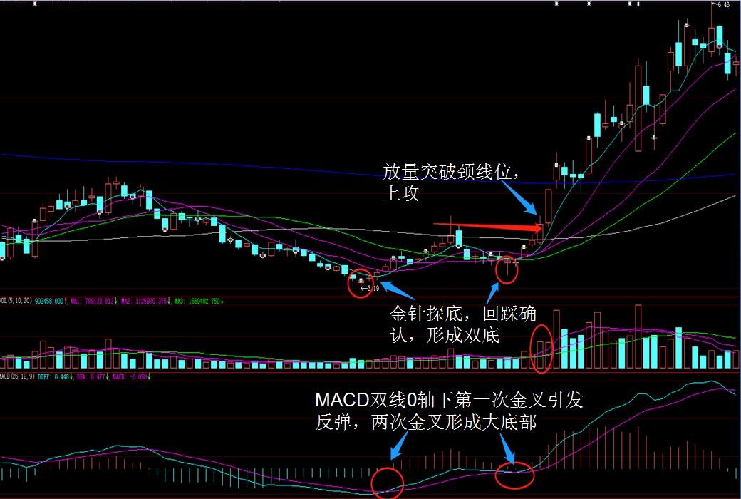 4,经常伴随着MACD指标双线的0轴下的金叉。