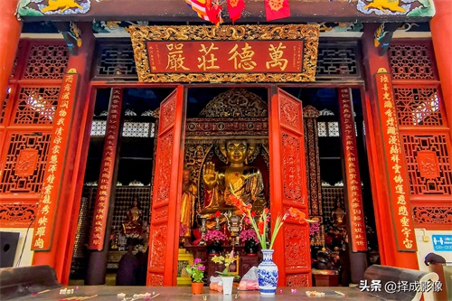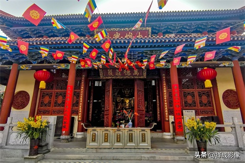 ▲法喜充满香烟弥漫结祥云佛运慈悲垂宇宙,雨露滋润物我清凉蒙惠泽钟灵毓秀映萝岗。