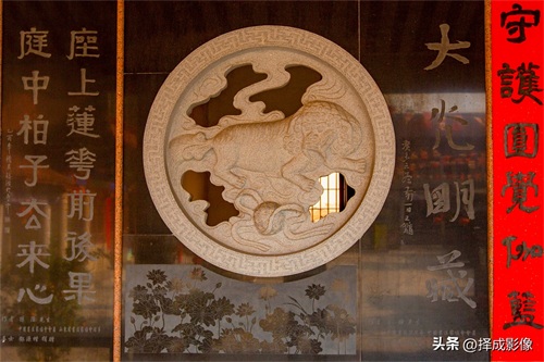 ▲在游览法雨寺之中,“读佛谒,赏书法”,让人凭添几分文化底蕴,尤其是赏读手书楹联更令人倍感书香之气迎面扑来。