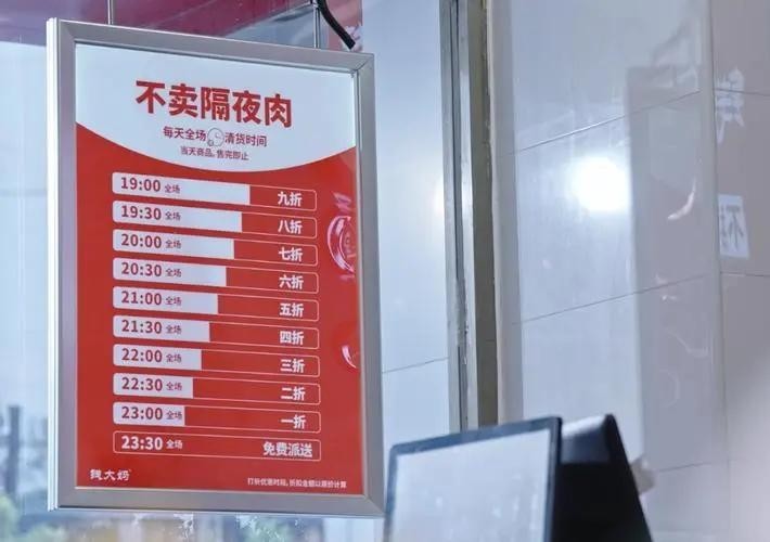除此之外,钱大妈还实行“定时打折”制度,每天晚上19点起,店内产品开始打折,每半小时再降一折,直至11:30免费派送,这种独特的“日清”模式,不仅有效避免了食材浪费,更让消费者感受到了前所未有的购物体验。