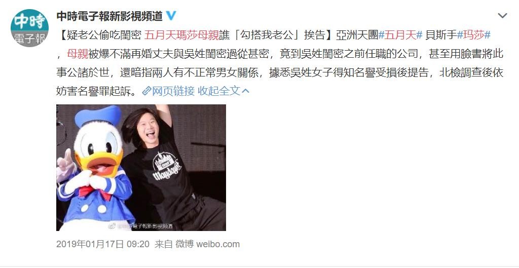 五月天玛莎母亲被判无罪,因发文指丈夫与闺蜜有不伦关系被提告