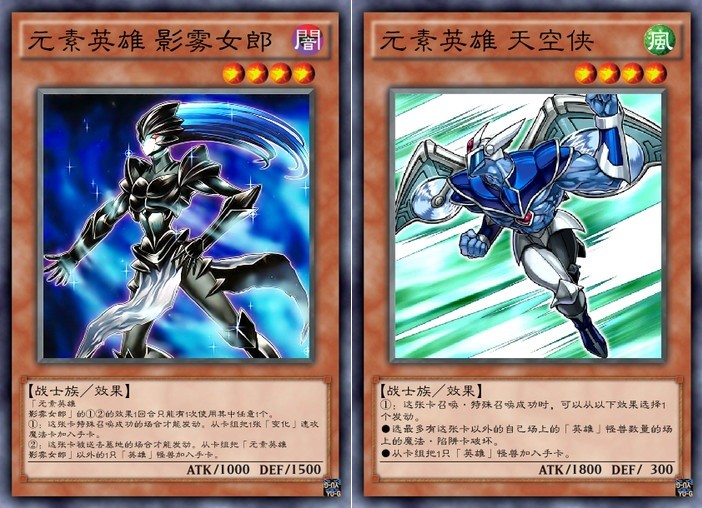 如果投入了假面英雄的打法,那卡组中肯定少不了「元素英雄 影雾女郎」这个检索怪兽;为了使卡组运转更加顺畅,除了常用的检索怪兽,如「元素英雄 天空俠」,这里还建议投入「元素英雄 电闪俠」,因为其被战斗破坏送去墓地时,可以从自己墓地把这张卡和名字带有「元素英雄」的怪兽卡3种类从游戏中除外,选择自己墓地存在的1张通常魔法卡加入手卡。可以选择墓地中的「平行世界融合」回收到手卡,这样「融合之门」+「平行世界融合」的组合可以一直使用下去,甚至出「幻影英雄 三一人」实现一回杀。