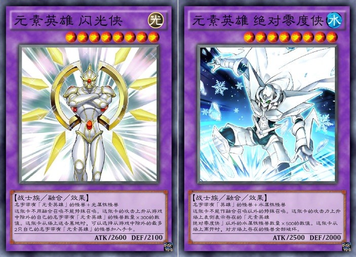 因为用「融合之门」融合召唤的「元素英雄 闪光俠」,攻击上升从游戏中除外的自己的名字带有「元素英雄」的怪兽数量×300的数值,也就是可以上升600攻击力。而「元素英雄 闪光俠」从场上送去墓地时,可以选择从游戏中除外的最多2只自己的名字带有「元素英雄」的怪兽加入手卡。这样就算「元素英雄 闪光俠」被对方给干掉了,刚才融合时利用「融合之门」除外的2个融合素材又能回到手卡,继续利用「融合之门」来融合召唤「元素英雄 闪光俠」,记得下满3张哦~~。而另一个「元素英雄 绝对零度俠」拥有被对方干掉后,炸对方全场怪兽的能力,就问你爽不爽。