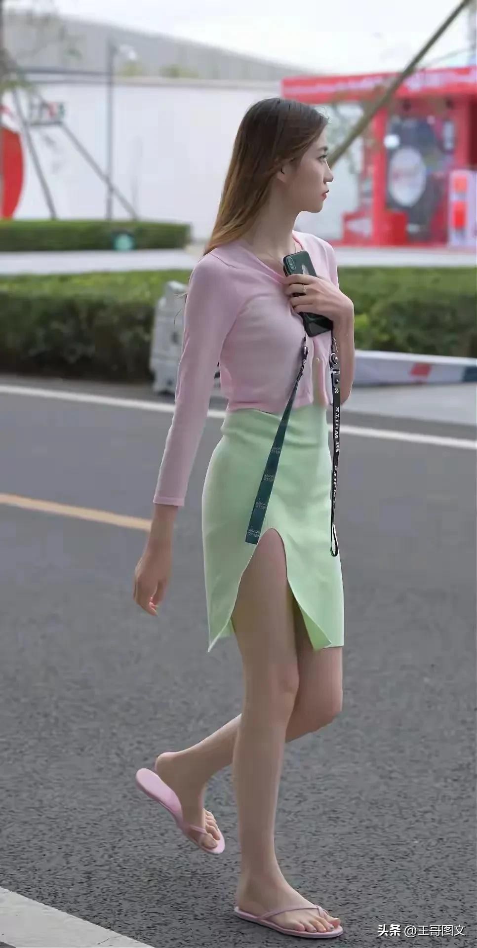 而她脚下的鞋子,可能是一双时尚的高跟鞋,细跟与鞋面的巧妙设计,不仅提升了她的身高,更让她的整个身姿显得更加挺拔婀娜。每一次高跟鞋与地面的触碰,都发出清脆而富有节奏感的声响,仿佛是在为她的时尚秀场打着节拍。