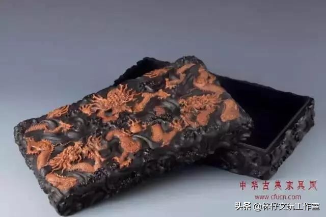 紫檀嵌黄杨木海水龙纹木雕墨盒