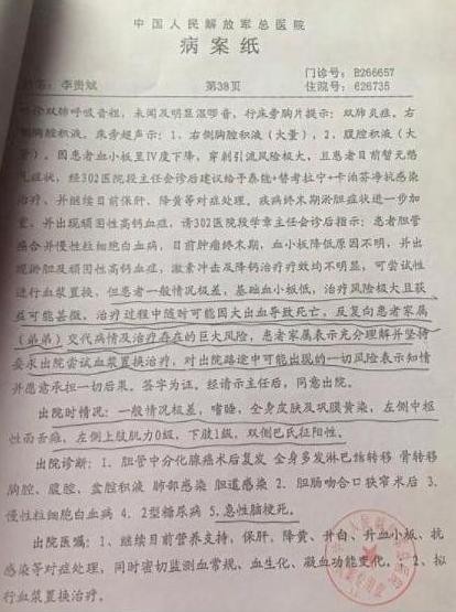2016年,李贵斌因工作压力大,导致胆管癌复发住院,病情一直没有好转,医生已下达了病危通知书。