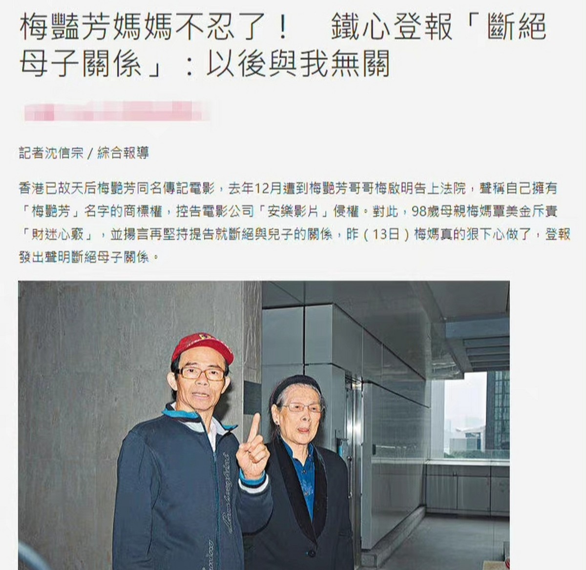 每月23万不够花?100岁梅妈被申请破产,梅艳芳7千万遗产所剩无几
