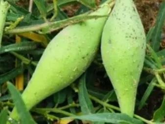 蓇葖果犹如纺线锤,两端短尖,中间宽大,吃起来味道甘甜,因多长在地头地稍,所以,叫地稍瓜。