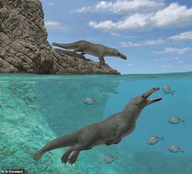 后来随着越来越多的化石被发现,人们兴奋地把它们拼凑在一起,发现它们的主人原来是一条陆上行走的鲸鱼!古生物学家将其命名为巴基斯坦鲸。