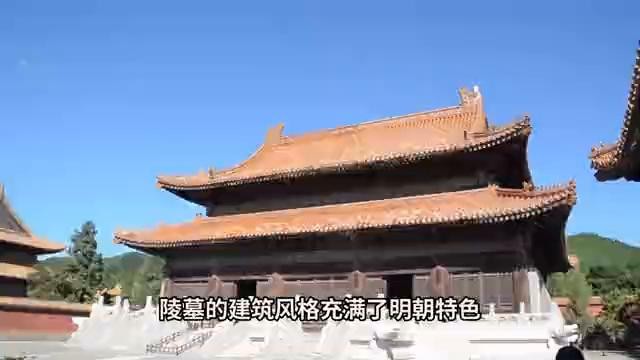 陵墓的建筑风格充满了明朝特色,以黄色为主调,屋顶由琉璃瓦覆盖,边缘装饰着精美的彩绘。整个建筑群坐北朝南,气势宏伟庄重,给人一种宫廷的氛围。