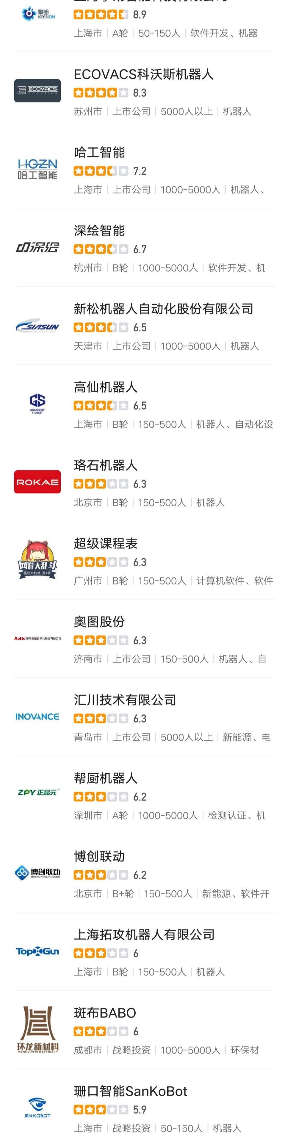 对于工业机器人行业,大师兄推荐以下这些公司,均是行业的热门公司,公司发展、薪酬待遇等方面都是非常不错的哦!
