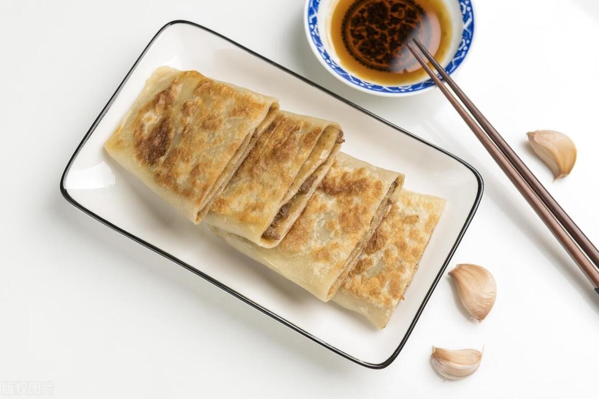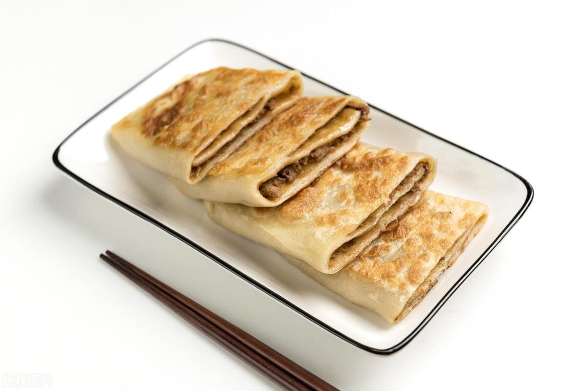一般呈长方形,大小比手掌略大,外皮擀得薄而均匀,经过煎制或烙制后,外皮呈现出诱人的金黄色,色泽油亮。
