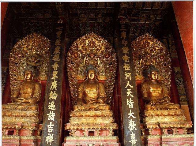 ①横三世佛: 释迦牟尼佛、阿弥陀佛、药师佛。