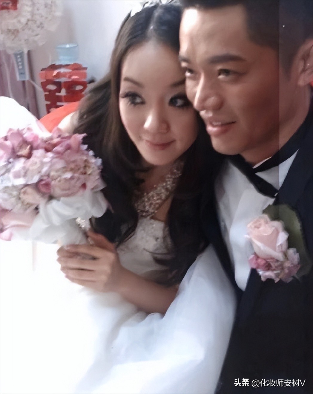 依偎在曾毅怀里的李娜看起来娇小又可人,抹胸白色婚纱为其打造出来梦幻婚纱色彩,搭配白色珍珠多层次的项链,富贵十足,发型带有微微波浪,戴上蝴蝶结发箍,装饰性增加减少了头发的单调和留白。蝴蝶结设计可谓是把美好和梦幻发挥到极致顶峰,搭配白色抹胸婚纱裙,迷人又梦幻,减龄感十足。