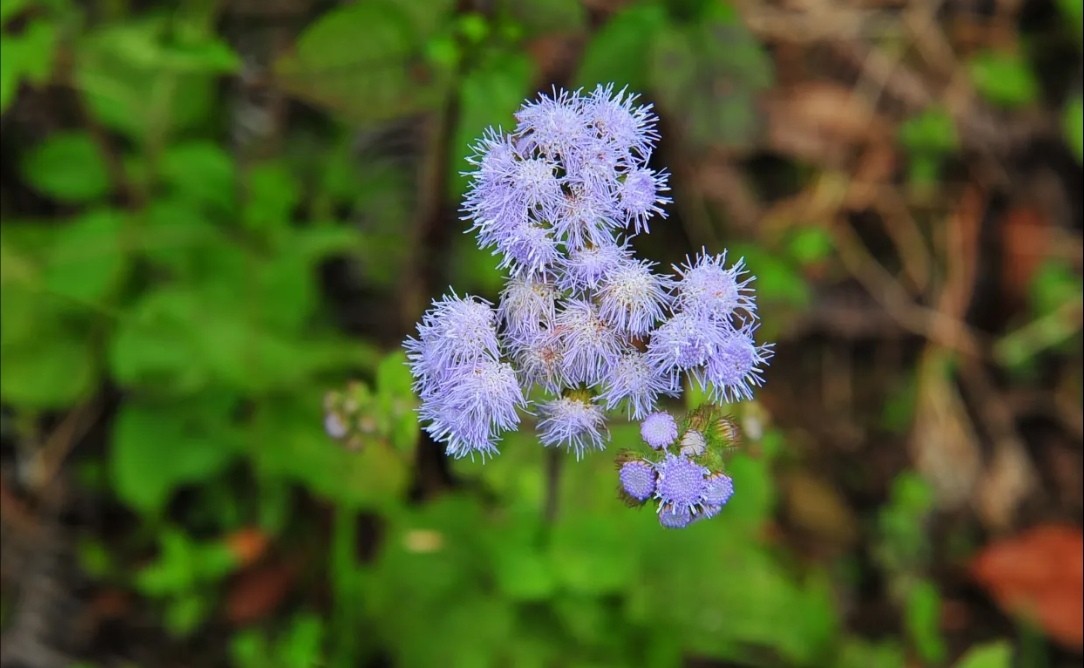 藿香蓟,喜温暖和阳光充足的环境,对土壤要求不严,不耐寒,不耐酷热,分枝能力强,耐修剪;通常生长在山谷、山坡林下、林缘、河边、地边、荒地上;原产中南美洲,19世纪传入我国华南地区,现在广泛分布于广东、广西、云南、贵州、四川、江西、福建等省区。