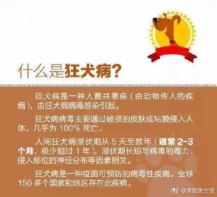 9岁男孩被狗舔手后死亡 9岁男孩小楠,40天前被小狗舔了一下手上的伤口,2月12日,因狂犬病死亡。狂犬病有时只需“舔一口” 人与宠物之间的逗弄和戏耍,是宠物传染狂犬病毒的主因之一。有的时候,感染狂犬病根本不需要小狗真的咬你一口,也许仅仅是舔了一口你破损的皮肤,你都需要注射狂犬病疫苗。所以,在逗弄宠物时多留些心,以防病毒染身。 狂犬病是由狂犬病毒引起的一种人畜共患的中枢神经系统急性传染病。主要临床表现为特有的狂躁、恐惧不安、怕风怕水、流涎和咽肌痉挛,最终发生瘫痪而危及生命。一旦发病,则死亡率极高,因此狂犬病的重点“在防不在治”。 尽管狂犬病的病死率高,但也不必过于恐慌,因为它的发病率还是很低的。也就是说被猫狗等动物咬伤之后,狂犬病发病的人数不算多。 被可疑动物咬伤之后,还是要高度重视预防发病,正确处理伤口,尽早接种疫苗是降低发病机会的关键。