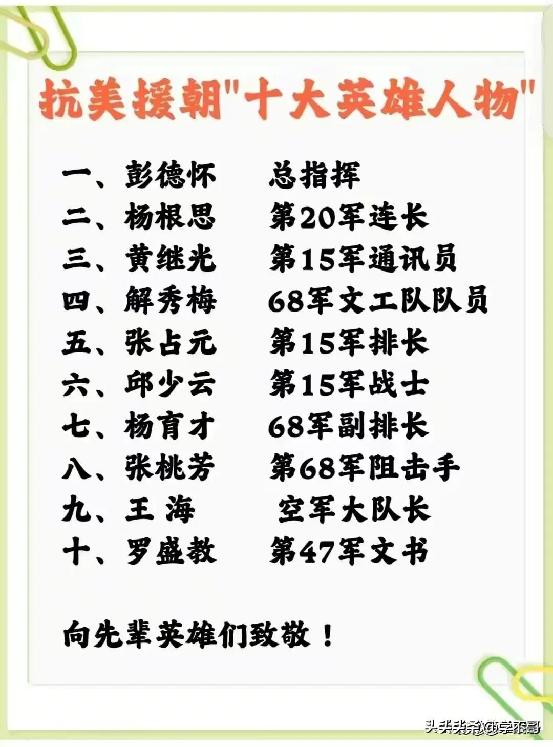 抗美援朝牺牲的高级将领!十大英雄!整理好了。