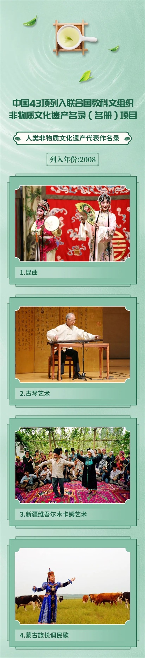 至此,我国共有43个项目列入联合国教科文组织非物质文化遗产名录、名册,居世界第一。