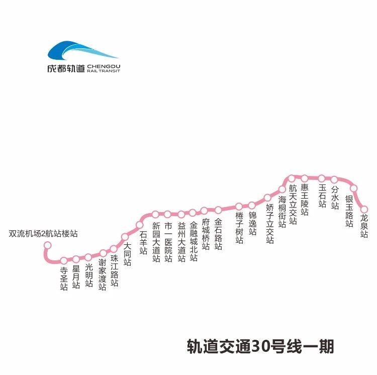 成都地铁30号线一期工程起于双流机场T2航站楼站,止于龙泉站,串联双流、成都中心城和龙泉驿等地区
