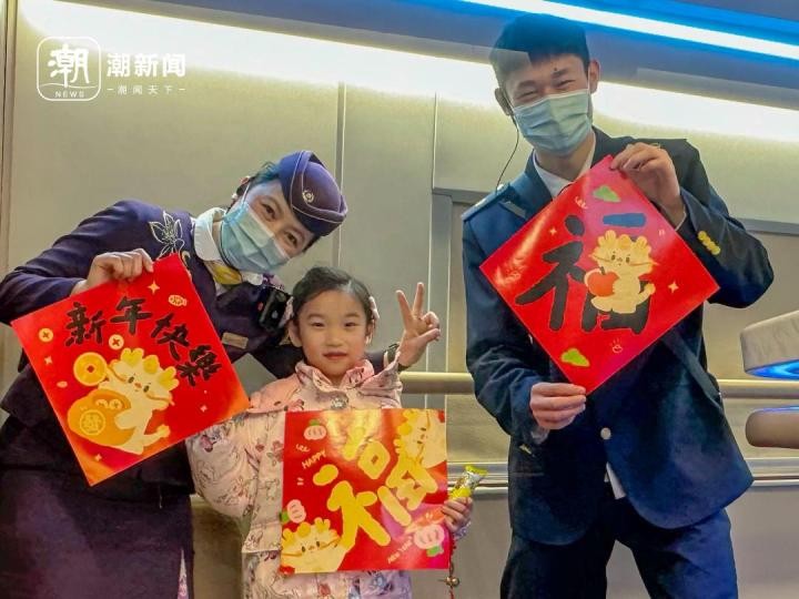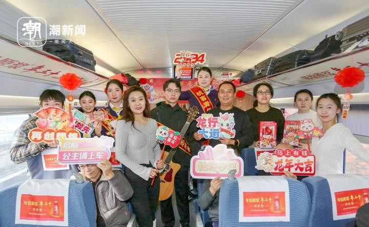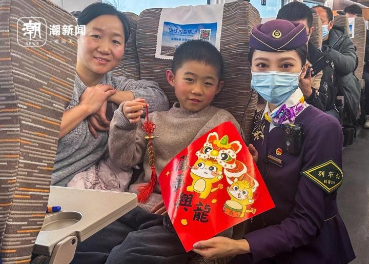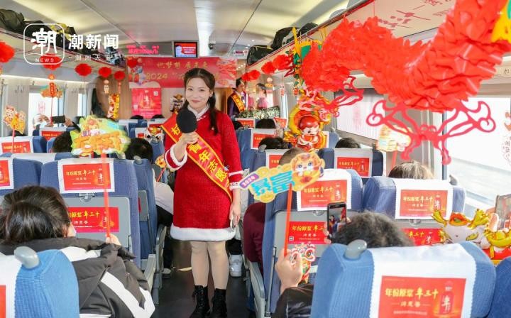 高铁列车上迎新年 乘务员与旅客一起欢乐互动