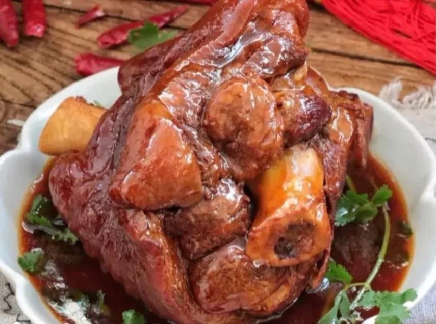 (4)加入适量清水大火煮沸转中火将肘子煮至软烂即可盛盘了,特别好吃香儿不腻,老少皆宜过年必备!
