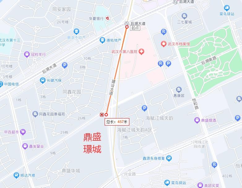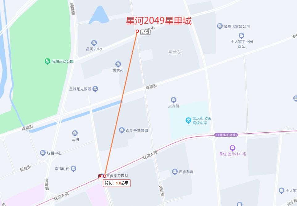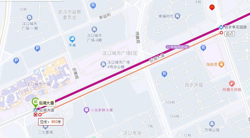 百步亭花园站,在后湖大道与百步亭花园路站交汇处,与后湖大道站直线距离不到1公里,开车路过都不容易注意到。