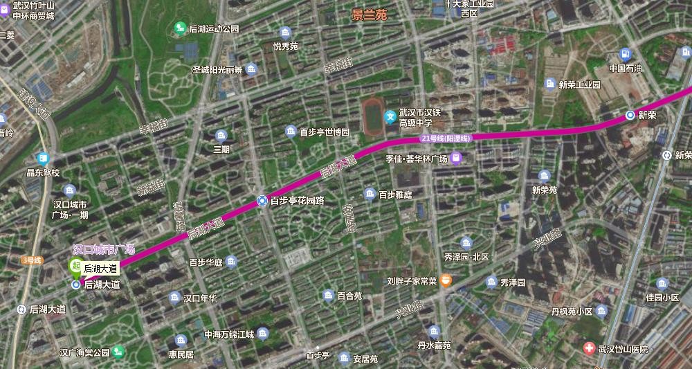 江岸岸后湖板块3站:后湖大道站、百步亭花园路站和新荣站