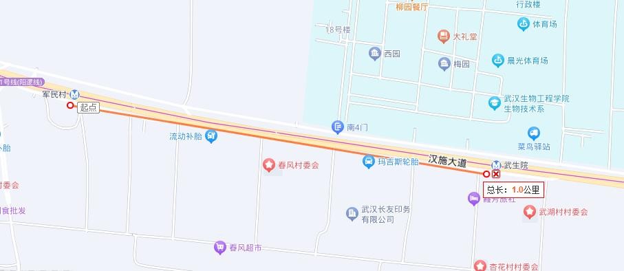 军民村站+武生院站,这两个站点所处区域属于新洲区阳逻街行政范围了。两个站距离约1公里左右,太近了,周边多为自然村庄和基础农田、农场。