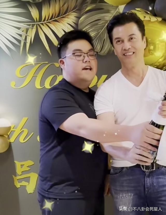 吕良伟和20岁的儿子同框,完全看不出是两辈人。