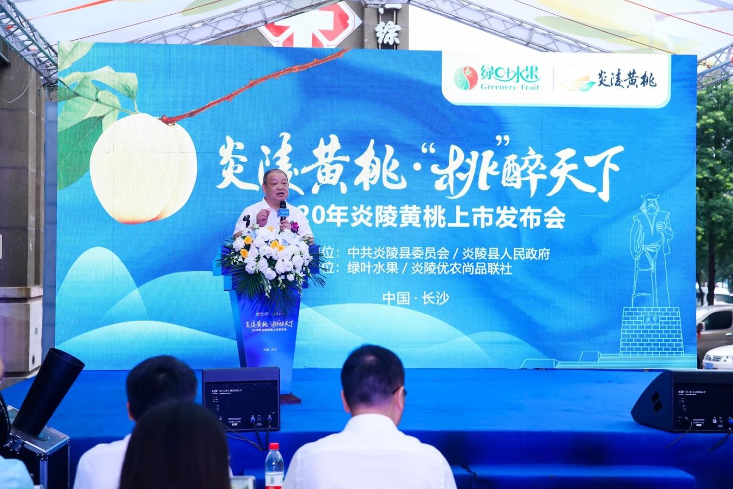 此次发布会由中共炎陵县委员会、炎陵县人民政府主办,绿叶水果与炎陵优农尚品联社联合承办,中共炎陵县委常委、宣传部部长谌孙爱,炎陵县人民政府副县长肖志高一行亲自站台推介炎陵黄桃,长沙县人大常委会党组成员、副主任曹伟兴和长沙县政府党组成员、副县长毛葵到场助阵。活动也吸引了来自云南、广东、杭州等地客商前来。