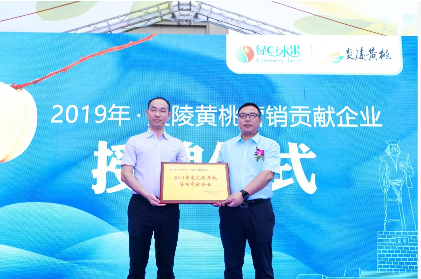 现场,炎陵县黄桃产业领导小组办公室与炎陵县农业农村局共同授予绿叶水果为“2019年度炎陵黄桃营销贡献企业”,紧接着,绿叶水果携手全国知名水果连锁企业与炎陵县优农尚品等合作社,签订了战略合作协议,首批订单高达600万斤。