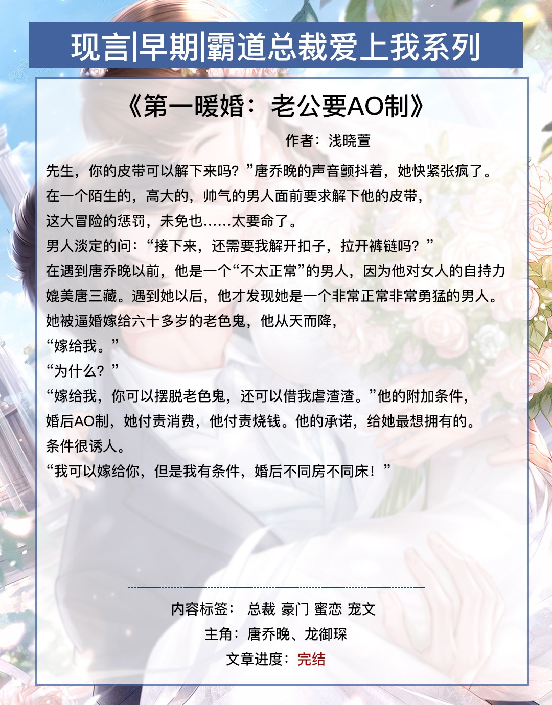 第六本《第一暖婚:老公要AO制》作者:浅晓萱【强力推荐!】
