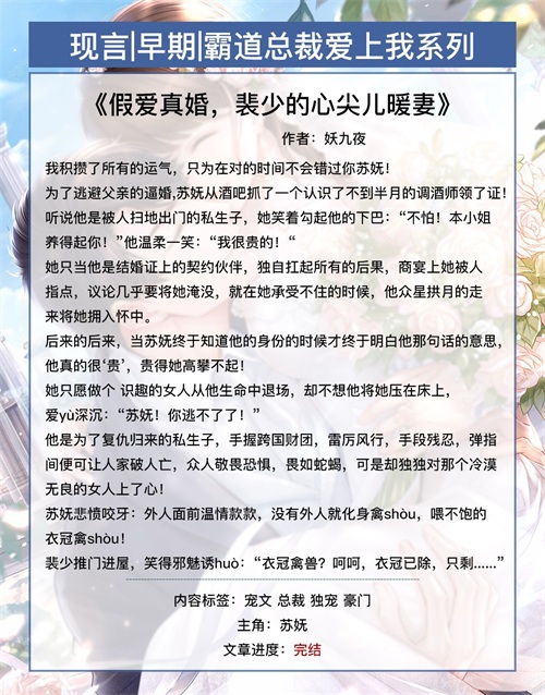 第十七本《假爱真婚,裴少的心尖儿暖妻》作者:妖九夜【强力推荐!】