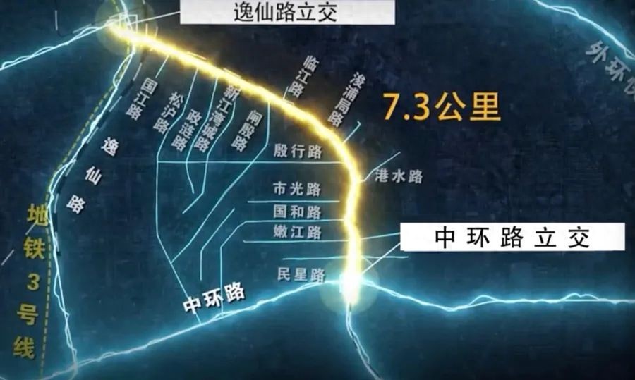 本次施工的中环民星路匝道封交顶升工程,是将民星路上下匝道进行顶升改造,完成后作为军工路主线高架连接至中环,实现军工路高架与中环高架的互通,缓解南北高架、中环高架北段的交通压力。