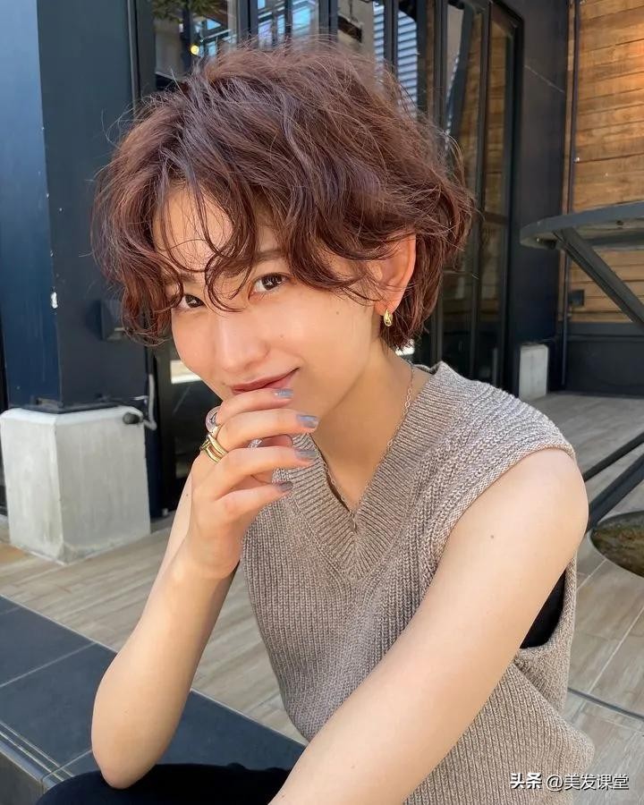 非常有日系风格的短发烫,让你瞬间拥有日系的少年感, 也能很好的凸显五官高级减龄 ,超短发烫卷是不太挑人的,适合鹅蛋脸小圆脸的女生